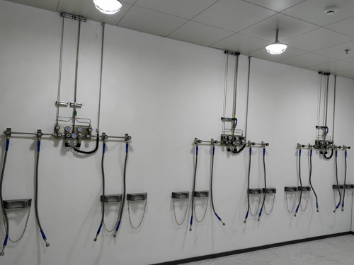 1.氣瓶間內壓力值調節器后蓋板與試驗室外的氣路用戶彼此并選擇SS316LBA管展開聯接,排水管內表面能晶亮度為Ra<0.4umBA級排水管。